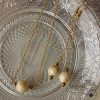 10mm-es, arannyal mosott fehér jáde ásványgolyókat álmodtunk arany színű ékszerláncra ennél az ékszerszettnél. Karácsonyi ajándéknak is tökéletes, de a jeles napokon alkalmi ékszer viseletként is megfelelő.