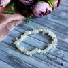 Fehér holdkő szemcse ásvány karkötő - Kékes fényjátékú, természetes fehér holdkő ásvány szemcséből álló, rugalmas gumira fűzött ásványékszer karkötő. Az ékszer fémmentes kivitelben készült, így fémallergiások is bátran viselhetik. Mérete fix 19 cm.
