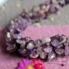 Rengeteg lila ametiszt szemcse alkotja ezt a nagyon különleges nyakéket, amely teljes egészében fémmentes kivitelben készült. A nyaklánc hossza a nyak hátuljától mérve kb 25 cm.