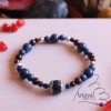 Lápisz-gránát egyedi ásványkarkötő – 2021 ősz – Változó méretű és felületű csodakék lápisz és mélybordó gránát ásványgolyókat házasítottunk most egy elegáns stílusú karkötőben. Egyedi darab, korlátozott mennyiségben elérhető!