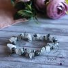 Rutilkvarc szemcse ásvány karkötő – Érdekes mintázatú, természetes rutilkvarc ásvány szemcsékből álló, rugalmas gumira fűzött ásványékszer karkötő. Csodás fekete turmalin (sörl) tűs zárványok adják a kövek mintáját. Az ékszer fémmentes kivitelben készült, így fémallergiások is bátran viselhetik. Mérete fix 19 cm.