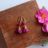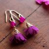 Játékos és nagyon tavaszias darab! Ezt a ciklámen színű, virágot formázó fülbevalót egy-egy szem festett pink jádéval dobtuk fel, így garantáltan egyedi megjelenést kölcsönöz. Rózsaarany színű, nem bedugós akasztóval. A fülbevaló hossza 6 cm.